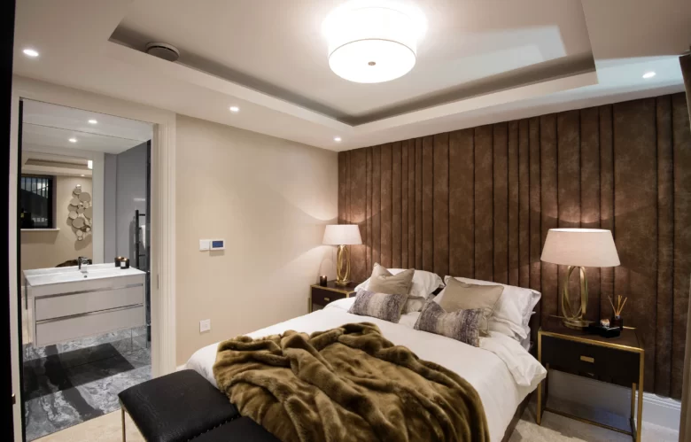 Descending to the lower ground floor reveals the luxurious master suite and. This private sanctuary features a generously sized master bedroom, thoughtfully designed to create a serene atmosphere.
